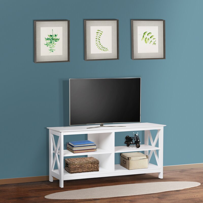 - Ruang Penyimpanan Luas: Terdapat rak terbuka di bagian bawah yang dapat menampung DVD, konsol game, speaker, atau aksesori hiburan lainnya.